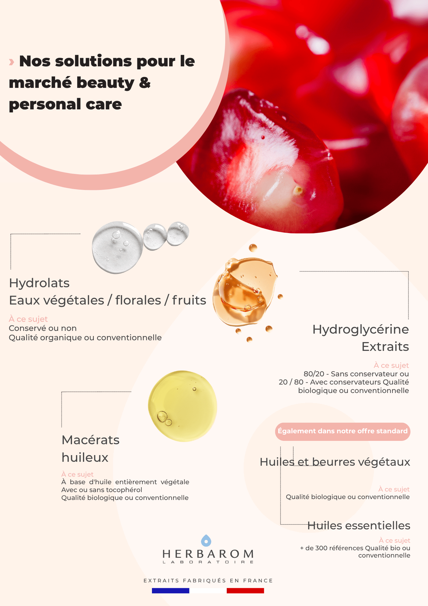HERBAROM is constantly developing its plant expertise in cosmetic formulation and plant extraction to meet the highest requirements of cosmetic manufacturers and perfume and fragrance makers, in search of ever-purer plant extracts and certified origins (find out more about our certifications).